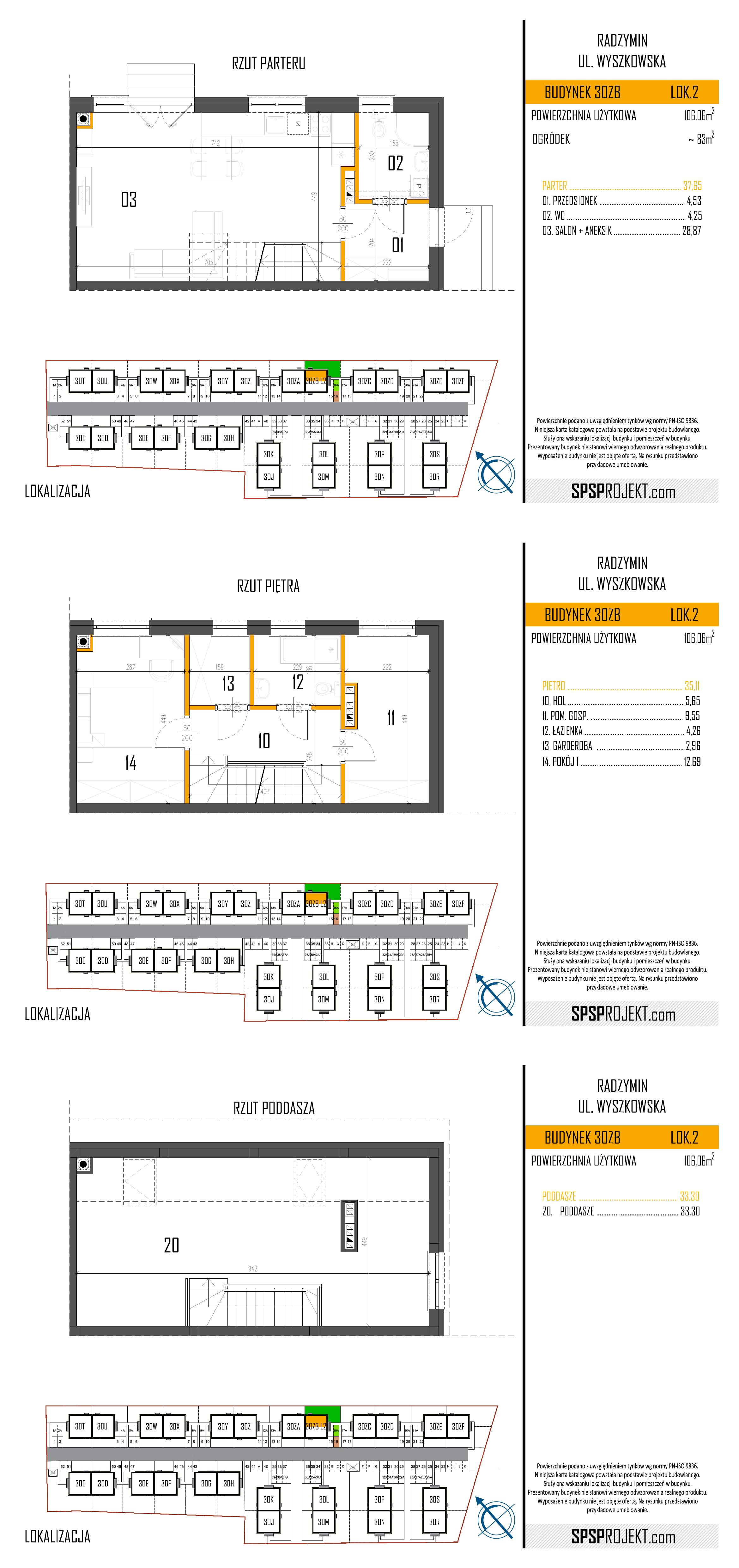 ul. Wyszkowska 30 ZC, Radzymin Parter, pierwsze+poddasze 1 106.06 55 5+aneks 6,402.04 679,000.00 1 miejsce parkingowe więcej informacji