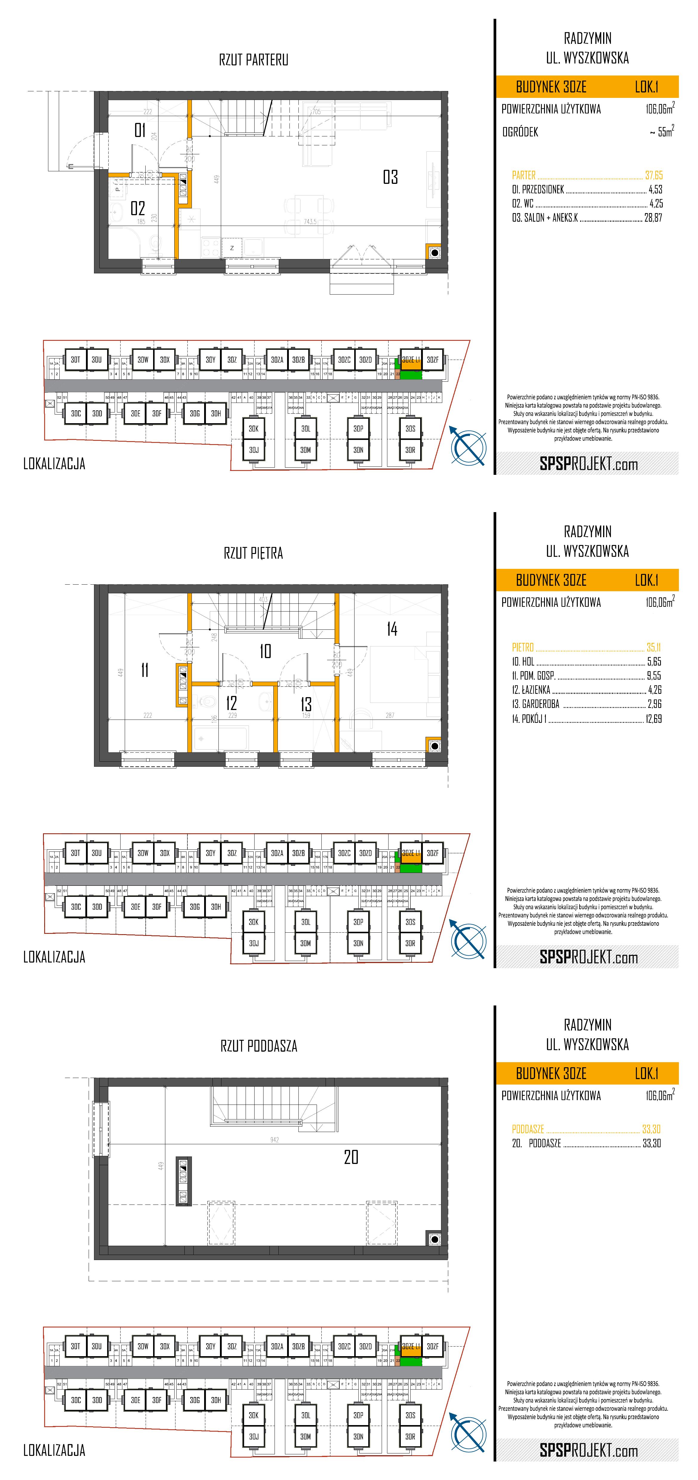 ul. Wyszkowska 30 ZE, Radzymin Parter, pierwsze+poddasze 1 106.06 55 5+aneks 6,402.04 679,000.00 1 miejsce parkingowe więcej informacji