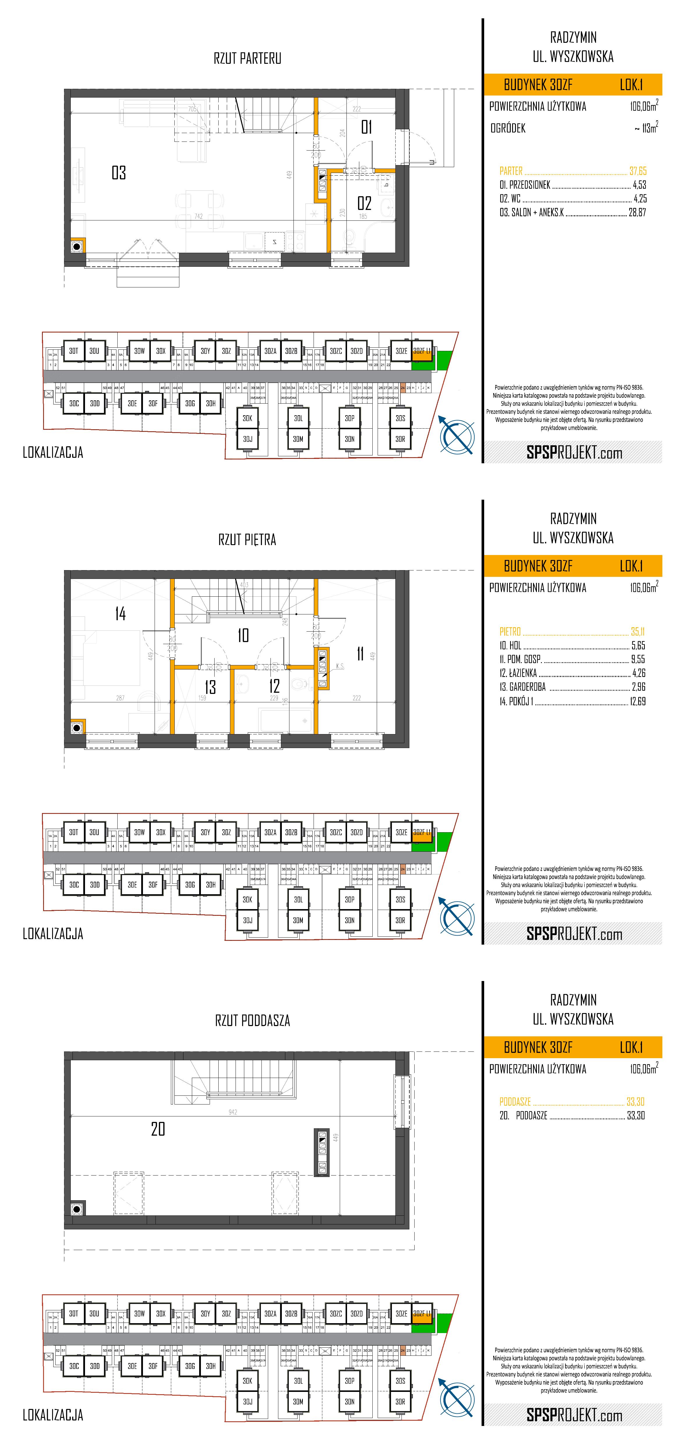 | ul. Wyszkowska 30 ZB, Radzymin | Parter, pierwsze+poddasze | 1 | 106.06 | 54 | 5+aneks | 6,402.04 | 679,000.00 | 1 miejsce parkingowe | więcej informacji | ||